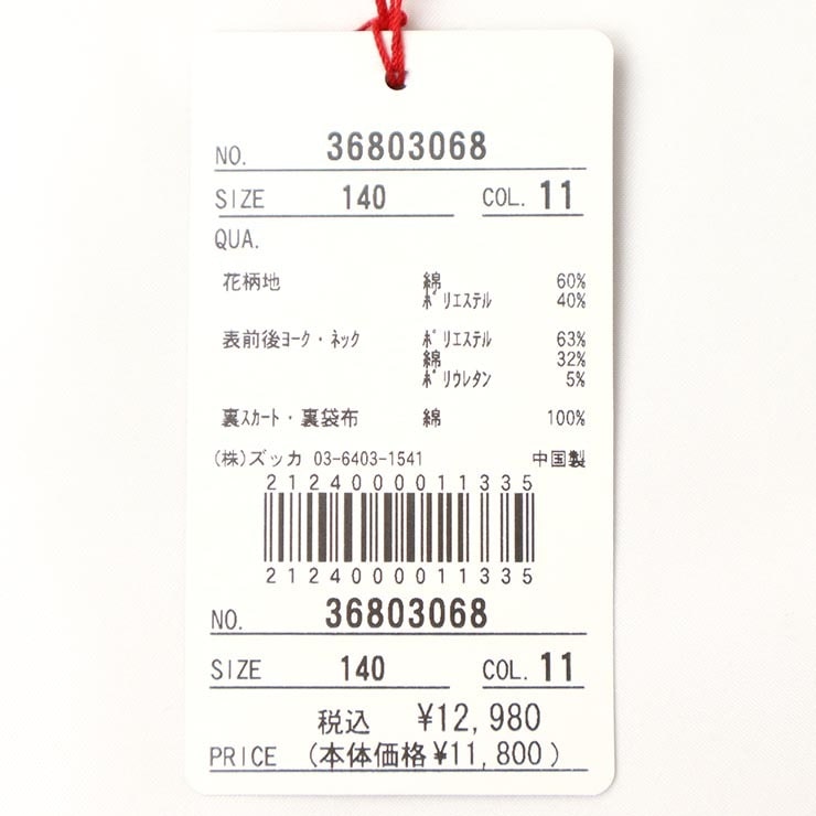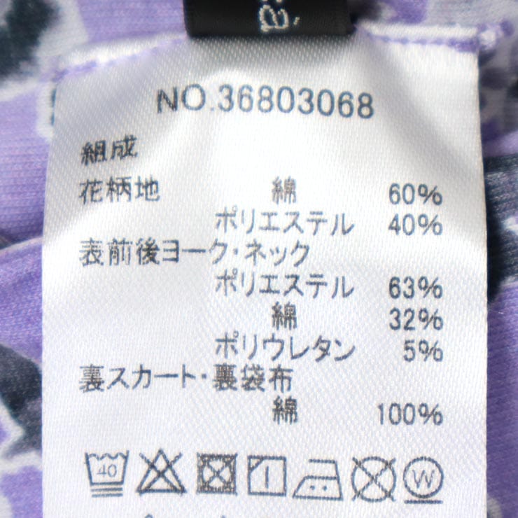 | 素材 | 花柄:コットン60%,ポリエステル40% ヨーク・ネック:ポリエステル63%,コットン32%,ポリウレタン5% 裏スカート:コットン100% |
