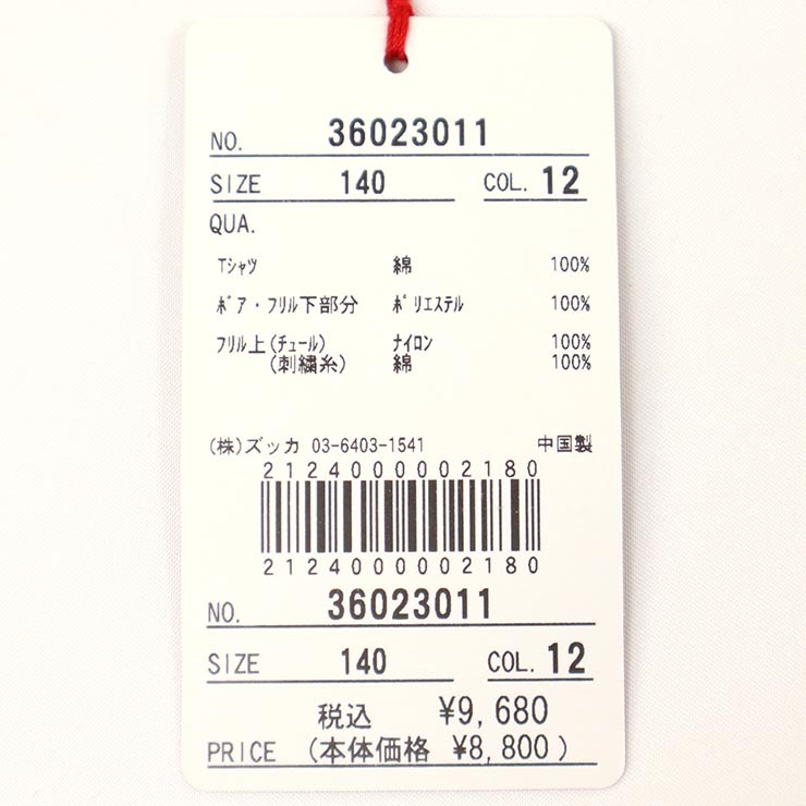 | 素材 | Tシャツ:コットン100% ボア・フリル下:ポリエステル100% レース:ナイロン100% |