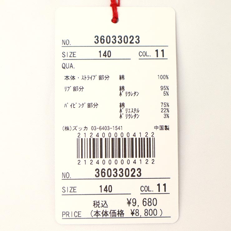 | 素材 | 本体:コットン100% リブ:コットン95%,ポリウレタン5% |