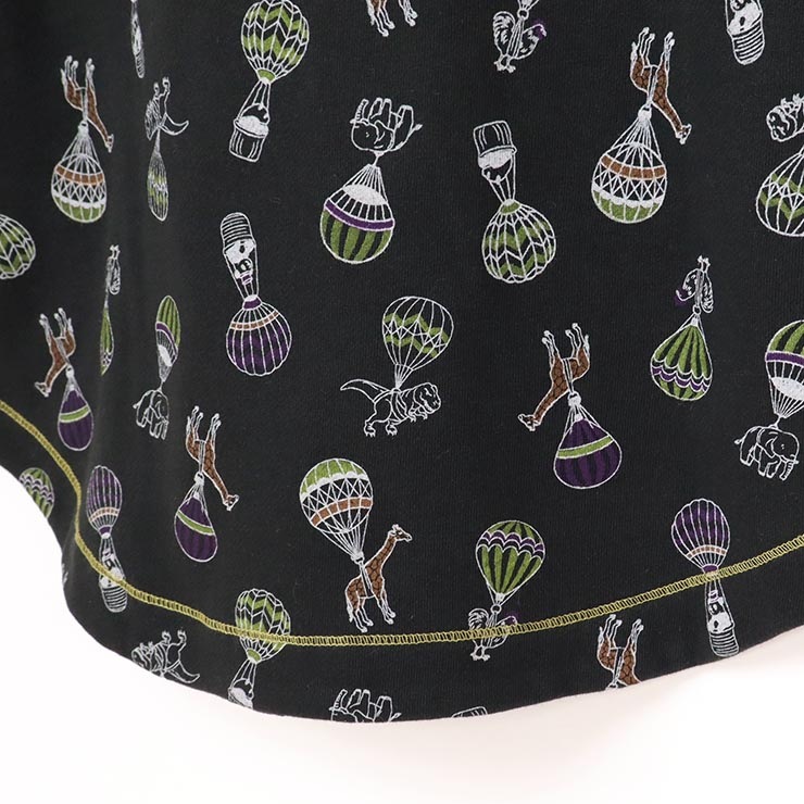 | オリジナルのアニマルバルーンプリントのチュニックトレーナー。時代も国境も超えたいろんな動物たちが気球に乗っている(ぶらさがっている)姿がユーモラス。昔のサーカスのような雰囲気がレトロで郷愁的な印象。裏毛素材でデイリーにも活躍でき、春先まで長くご着用いただけます! |