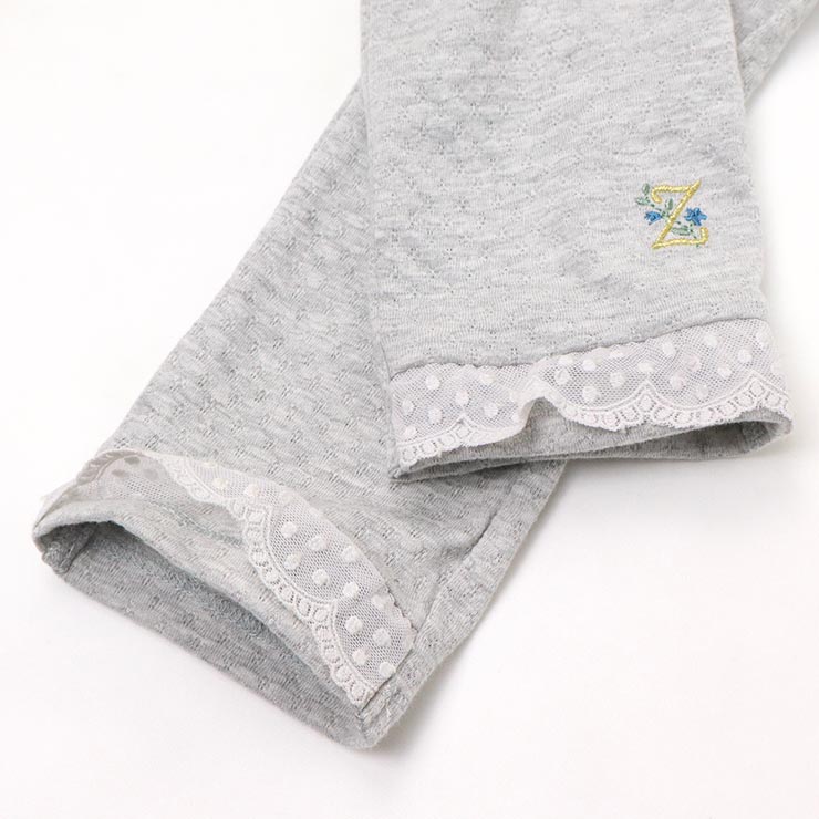 | 柔らかでさりげない小柄が女の子らしい印象のアイレット天竺素材。ドット柄のチュールレースがかわいい!肌触り柔らかくいろんな重ね着スタイルに重宝します♪ラメ糸のブランドロゴ刺繍が上品さを引き立てます。 |