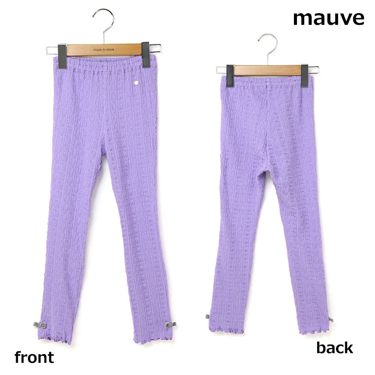 | 薄手なのに温かみのあるシンプルレギンスは1枚あると重宝します!裾脇に付いたリボンがさり気ない可愛さを表現。 |