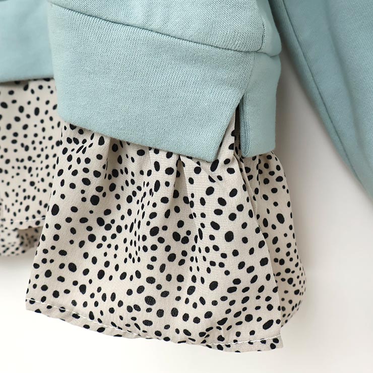 | 裾にドット柄チュールを重ねたトレンドライクなトレーナー。大人っぽく、憧れのお姉さんに。 |