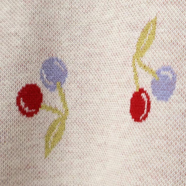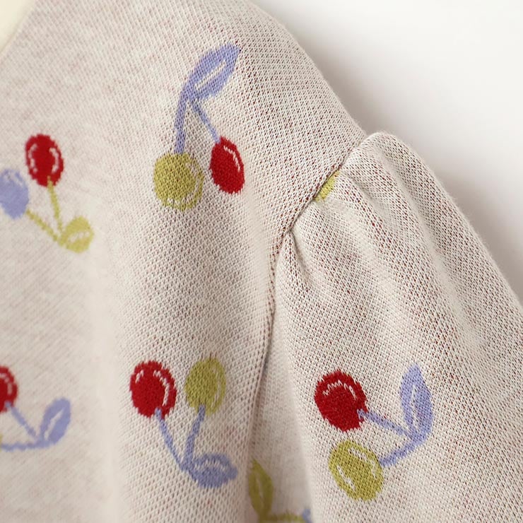 | カラフルな配色がかわいいチェリー柄をジャガード生地に編みたてたトレーナー。ガーリーで明るい印象になりますね♪ |