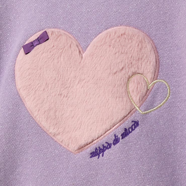 | キラキララメがかわいい普段使い出来る秋冬定番のラメ裏毛素材。人気のペプラムシルエット。今どきルーズトレーナーです。前身頃のファーの大きなハートモチーフはインパクト大です。大人っぽく都会的な印象に。 |