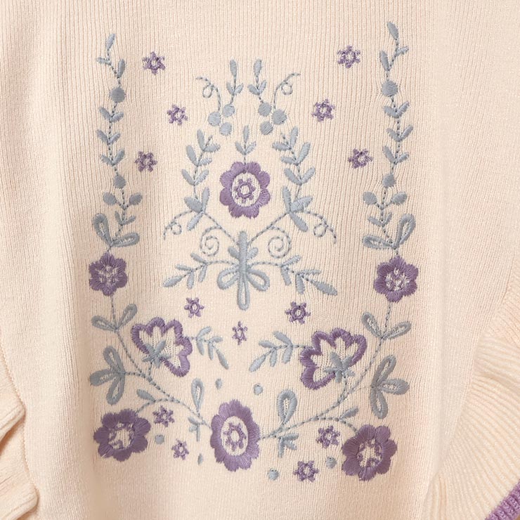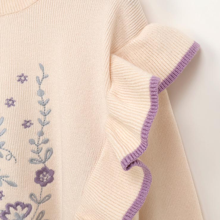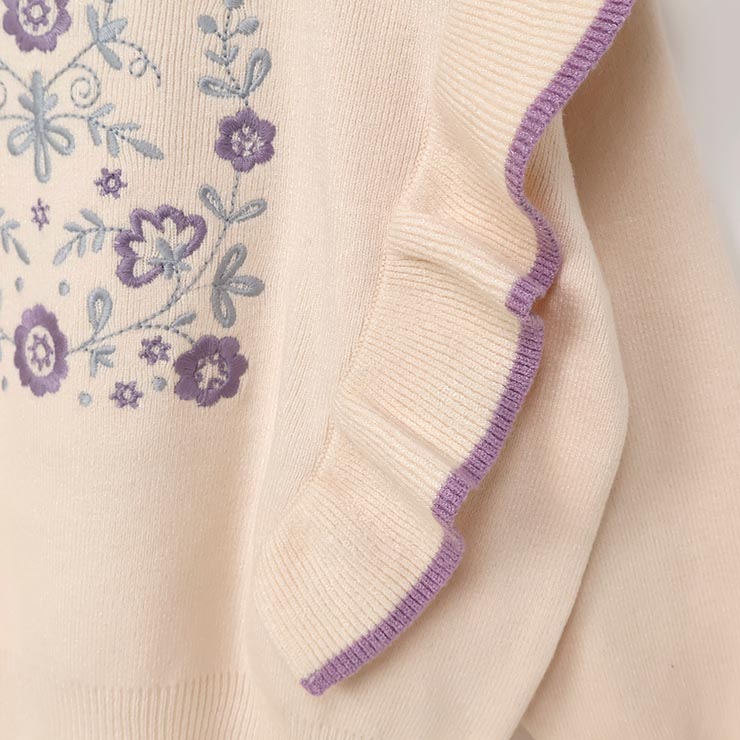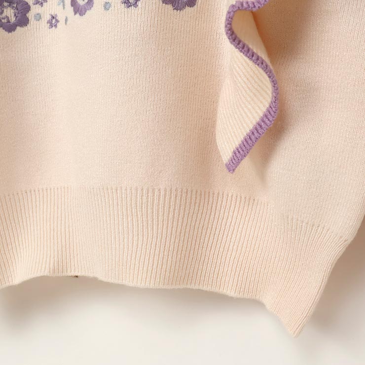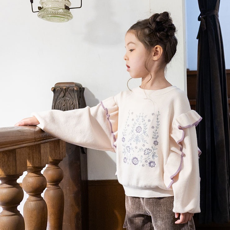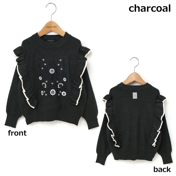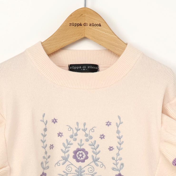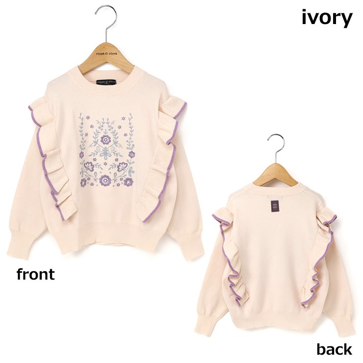 【 L(130-140cm) LL(150-160cm) 】長袖ニット 肩フリル フラワー zuppa di zucca ズッパディズッカ 37043035j