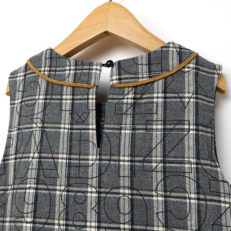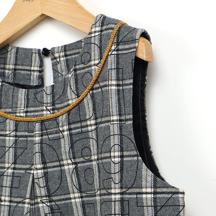 | 今季お薦めのオリジナル柄を施したチェック柄のジャンパースカート。クラシカルなチェック柄にアルファベットをMIXしたオリジナル柄は他にはありません。ブラウスとのコーディネートで、ちょっとしたお出かけにも対応できるおすすめの商品です。 |