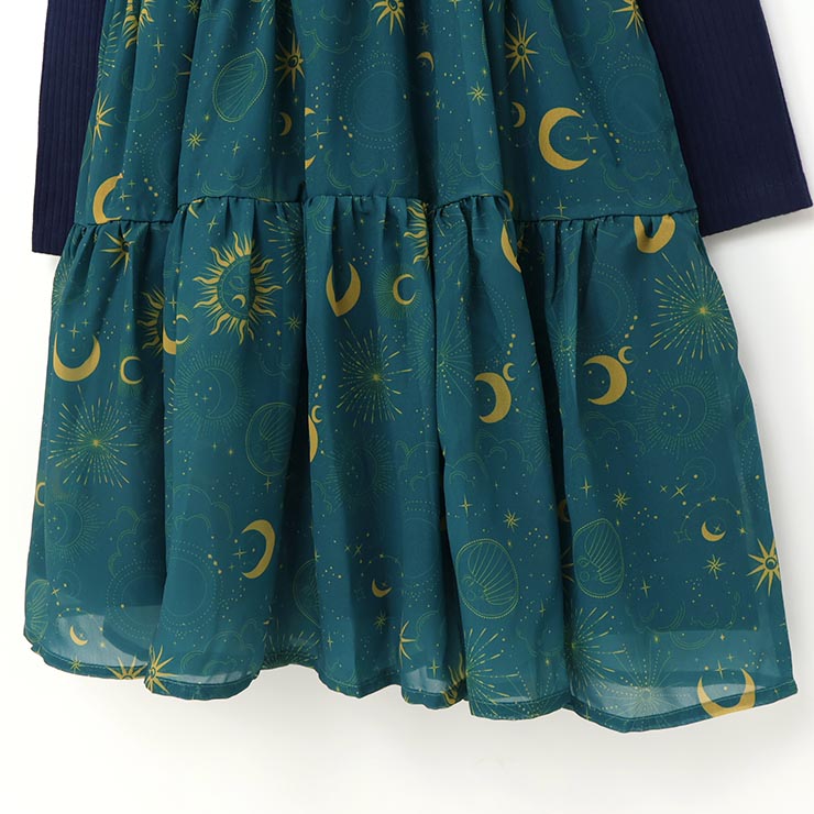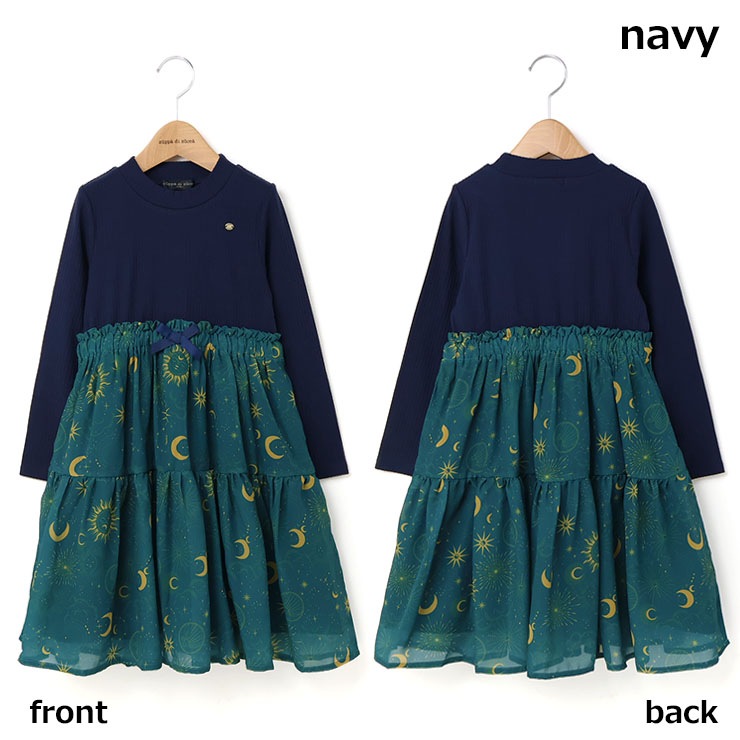 【 100cm 110cm 120cm 130cm 】ドッキング長袖ワンピース 天文柄 zuppa di zucca ズッパディズッカ 37813088k