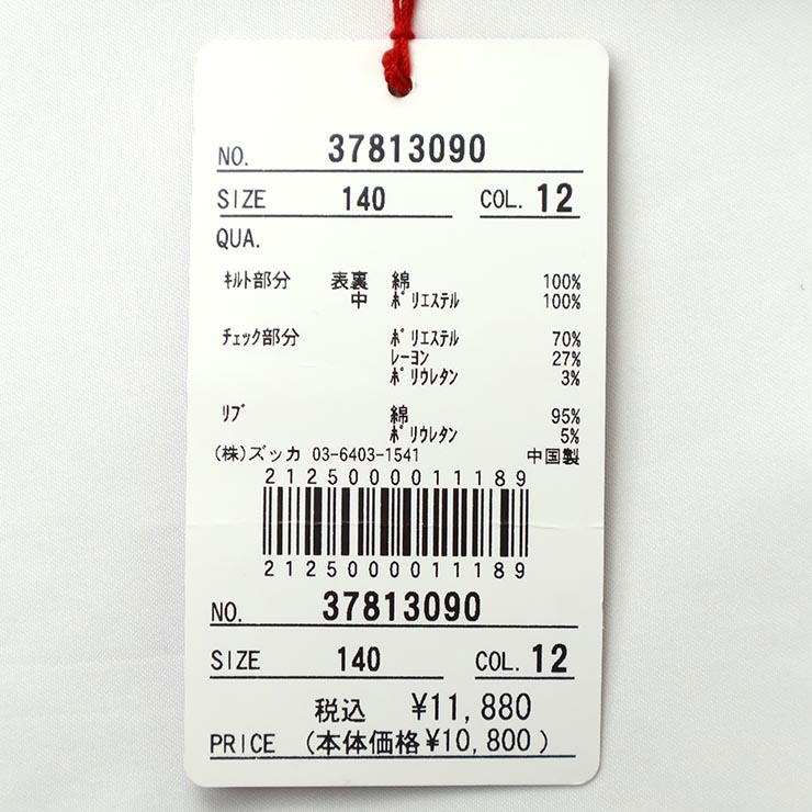 【 140cm 150cm 160cm 】ドッキング長袖ワンピース キルト チェック zuppa di zucca ズッパディズッカ 37813090j