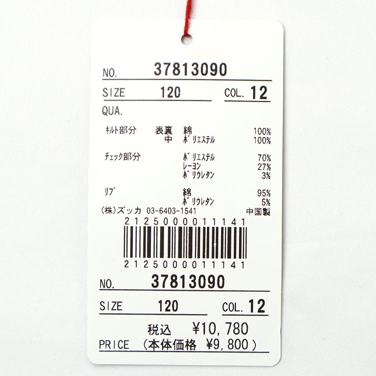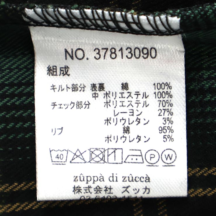 【 100cm 110cm 120cm 130cm 】ドッキング長袖ワンピース キルト チェック zuppa di zucca ズッパディズッカ 37813090k
